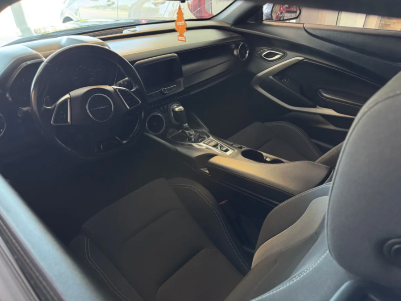 El Camaro 2019 destaca por su silueta coupé agresiva de 2 puertas, líneas musculosas y presencia imponente en color gris elegante. Interior con asientos deportivos, tecnología moderna y espacio para 4 ocupantes. Incluye elementos premium como sistema de infoentretenimiento, controles al volante y un habitáculo orientado al conductor.